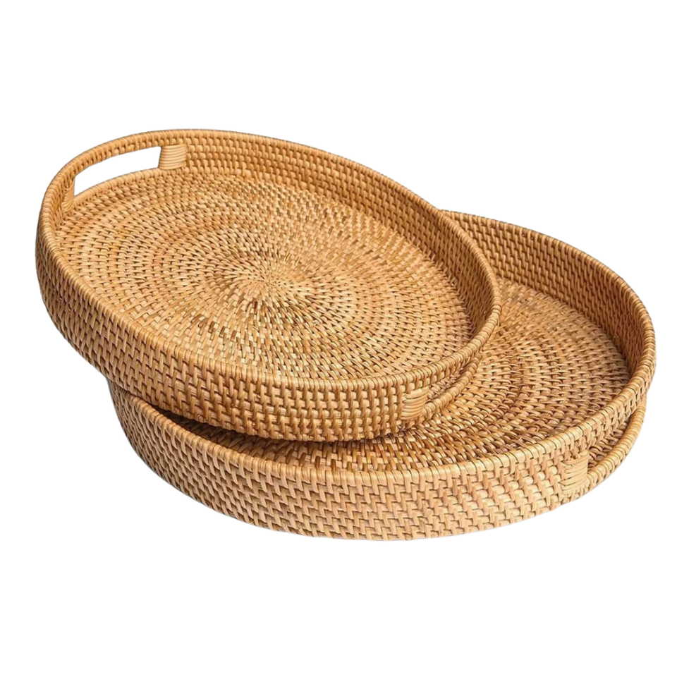 Panier/plateau rond en rotin en osier fabriqué à la main avec poignées personnalisable du Vietnam Design fonctionnel durable