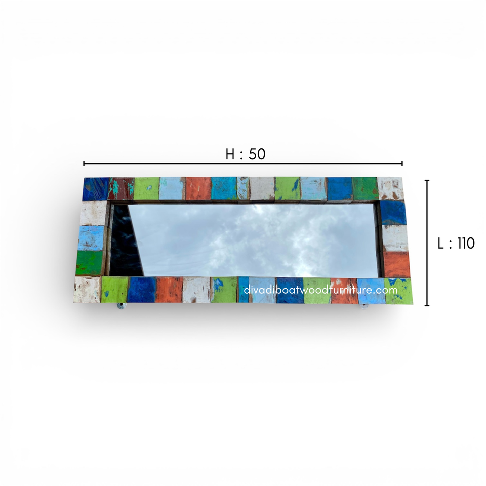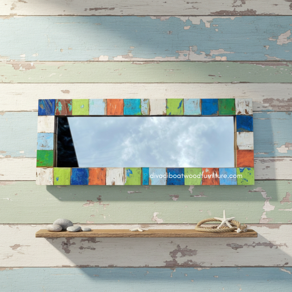 Miroir rustique artisanal écologique en bois de bateau récupéré couleur naturelle pour décoration murale maison salon chambre vente en gros
