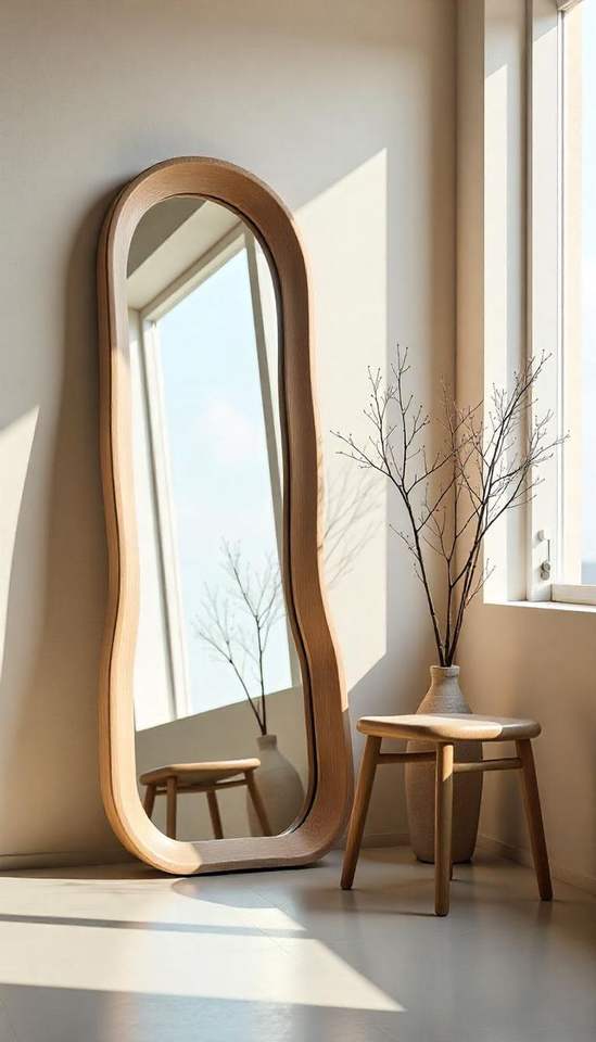 Miroir à cadre en bois moderne rustique fabriqué à la main Design géométrique personnalisé avec finition naturelle pour une utilisation décorative de mariage