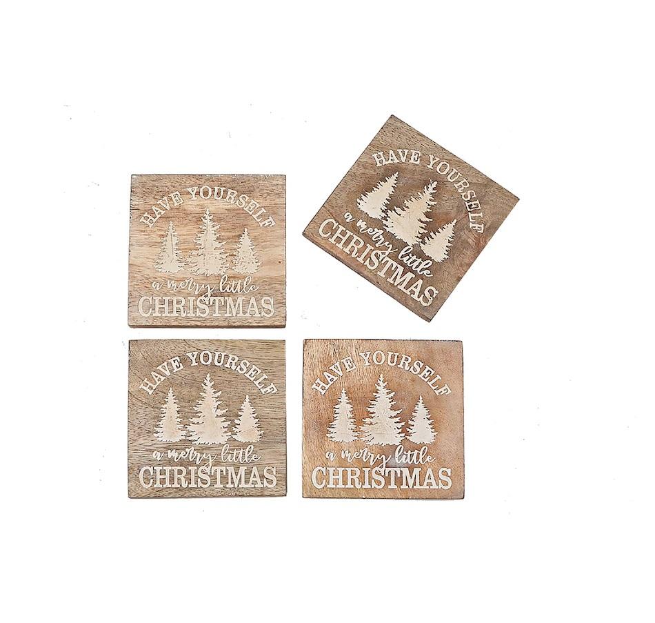 Ensemble de tapis/tampons chauffants en bois de manguier et noyer écologique de conception carrée rustique artisanale