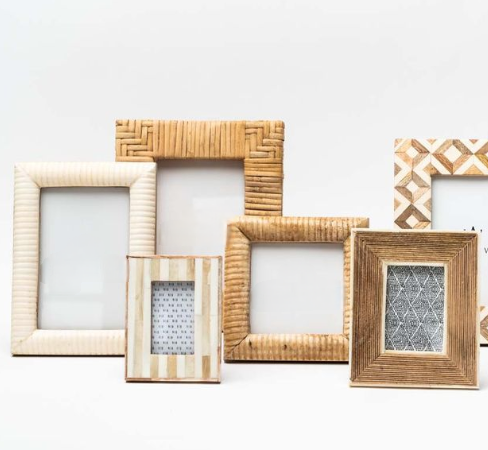 Cadre photo en bois rustique artisanal, design en bois d'acacia et rotin écologique, pour la décoration de la maison, du bureau, de la table et pour offrir en cadeau