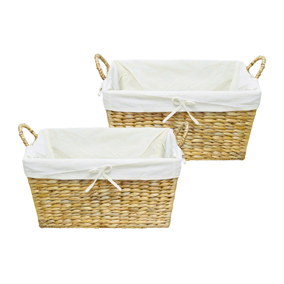 Panier de rangement en jacinthe d'eau en bambou rotin jonc de mer fabriqué à la main avec panier à linge amovible en coton
