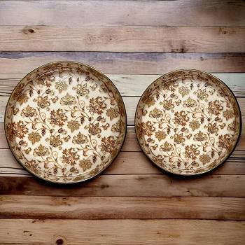Ensemble artisanal de deux plateaux en MDF écologique avec impression esthétique pour le service et la décoration à la maison de f s International