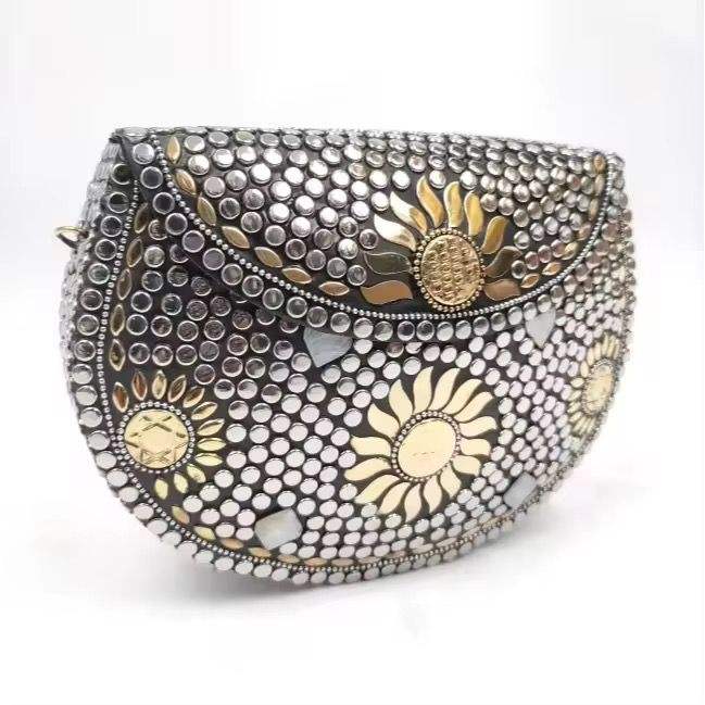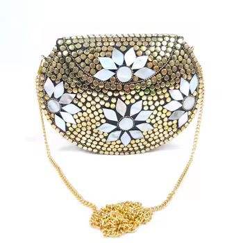 Sac à bandoulière de soirée de luxe God Grace Craft fait main avec incrustation de coquillages et motif circulaire pour femme