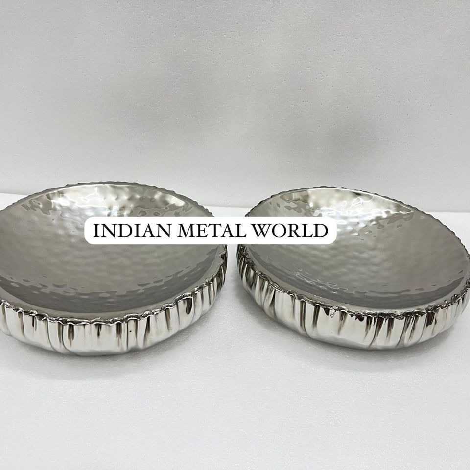 Bol décoratif en métal argenté fabriqué à la main pour la décoration intérieure et le service Bol à chocolat au design unique à bord ondulé au prix de gros