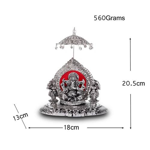 Statue de Riddhi sitdhi Ganesha faite à la main avec gravure à la main en argent Singhasan pour la maison