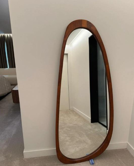 Miroir mural asymétrique en bois massif artisanal, cadre en chêne et noyer, écologique, style Art déco, pour salle de bain et hôtel, prix abordable