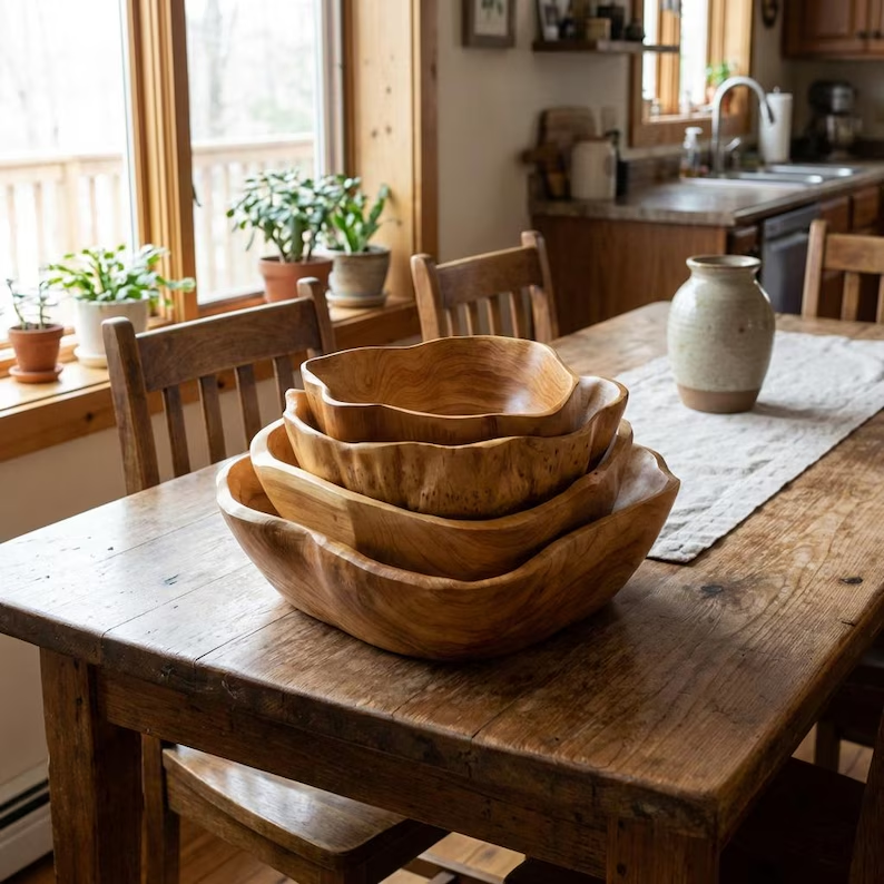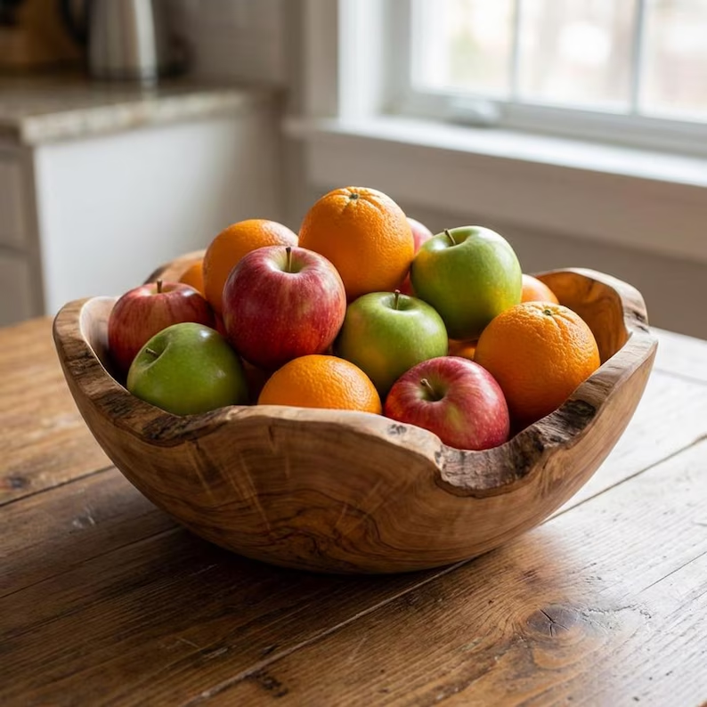 Bol en bois massif artisanal, saladier en bois de racine fait main, décoration de cuisine en bois, grand bol de service