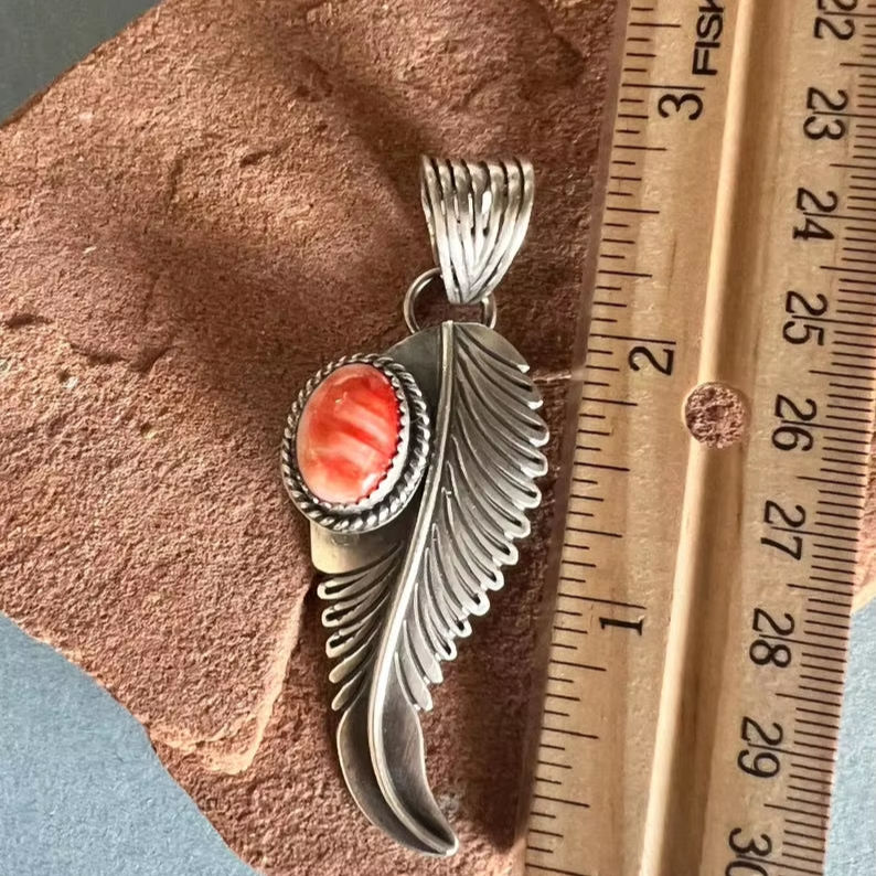 Pendentif plume de coquille d'huître épineuse fabriqué à la main en argent sterling 925