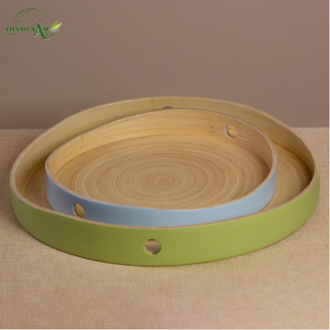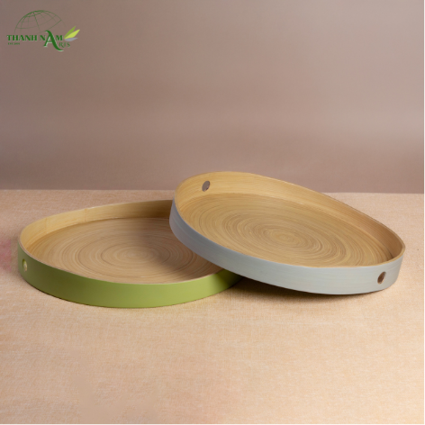 Plateau de service en bambou tressé artisanal, laqué sur mesure, écologique, durable et au design moderne