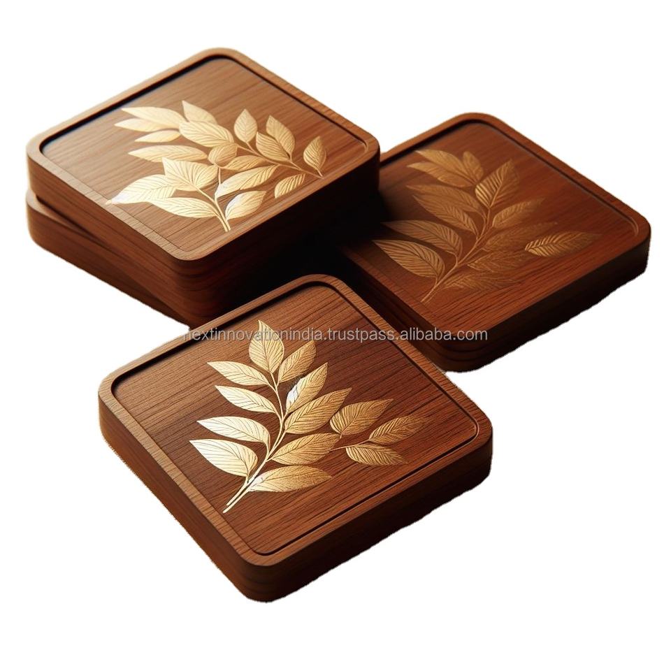 Dessous de verre faits à la main en bois d'acacia Planche carrée éco-élégante inspirée du design rustique protégeant les marques de verre de déversement de café de table