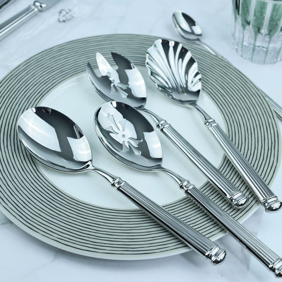 Couverts en acier inoxydable fabriqués à la main de haute qualité au design fantaisie ensemble de couverts à la mode vente chaude cuillère de service ensemble de couverts