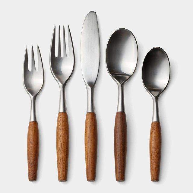 Ensemble de couverts en acier inoxydable fabriqués à la main avec manche en bois parfait pour les réunions de famille