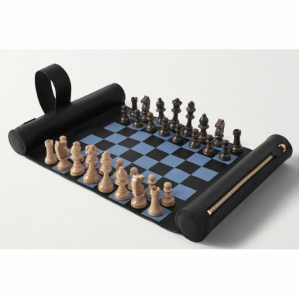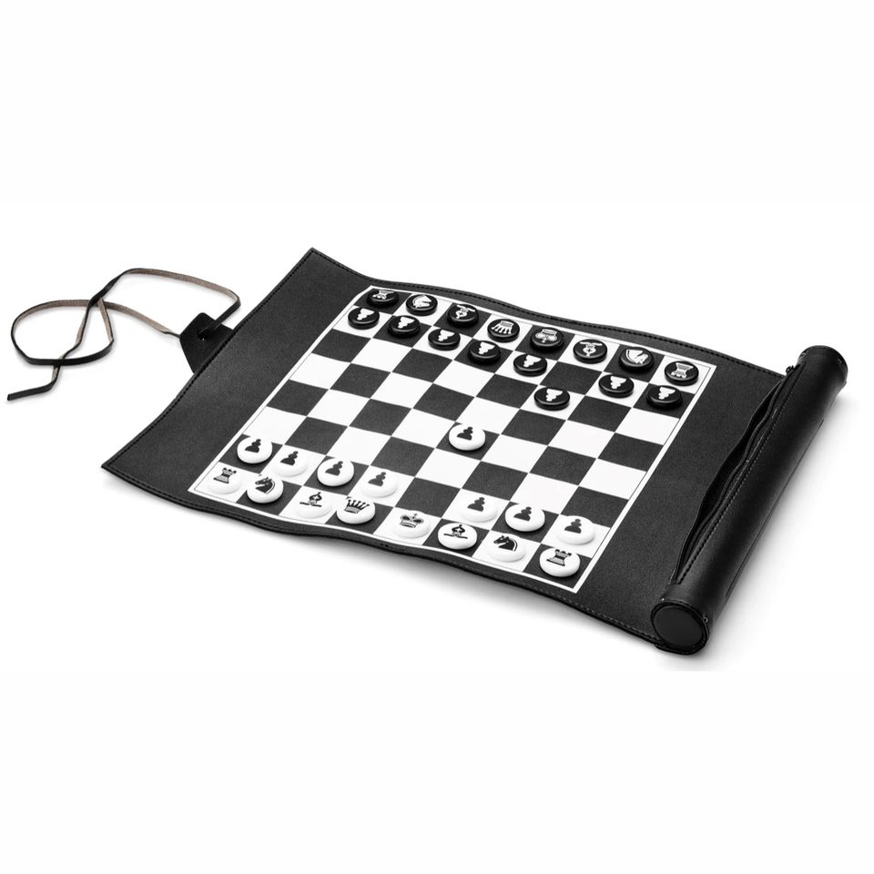 Jeu d'échecs enroulable en cuir suédé artisanal | Jeu de société de voyage minimaliste avec rangement à fermeture éclair | Cadeau d'entreprise de luxe