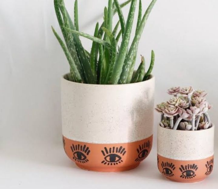 Pot en terre cuite artisanal de style vintage, sculpté à la main, écologique, pour plantes d'intérieur et d'extérieur, herbes, succulentes
