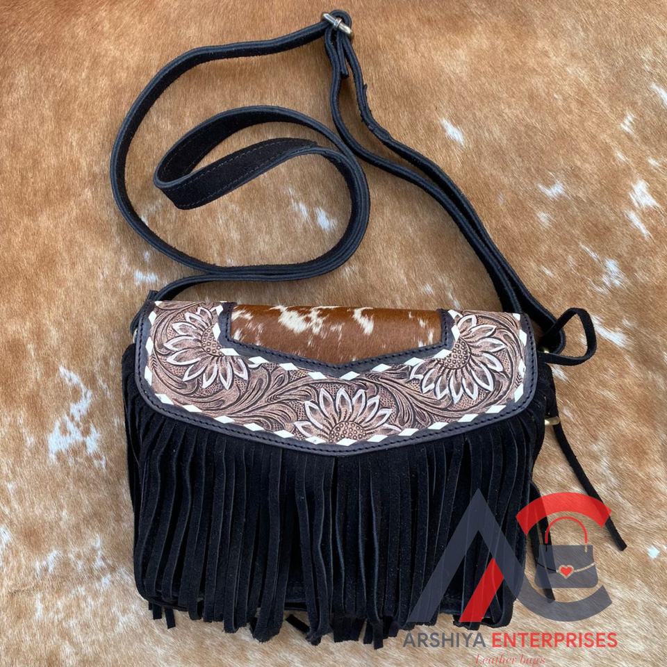 Product name:Hand Tooled Suede Leather Fringe Small Purse