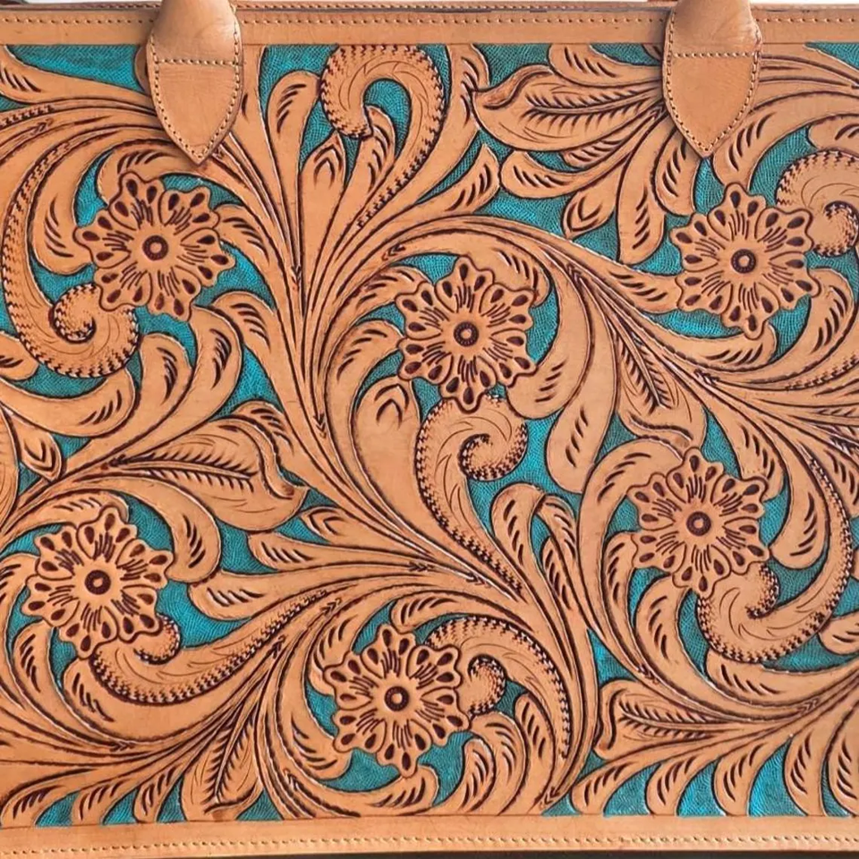 Sac fourre-tout en cuir artisanal pour femmes, sac à main en cuir véritable à motifs floraux avec poignée supérieure