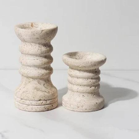 Porte-bougie en pierre de travertin artisanal, design minimaliste moderne, texture naturelle durable pour une décoration intérieure élégante