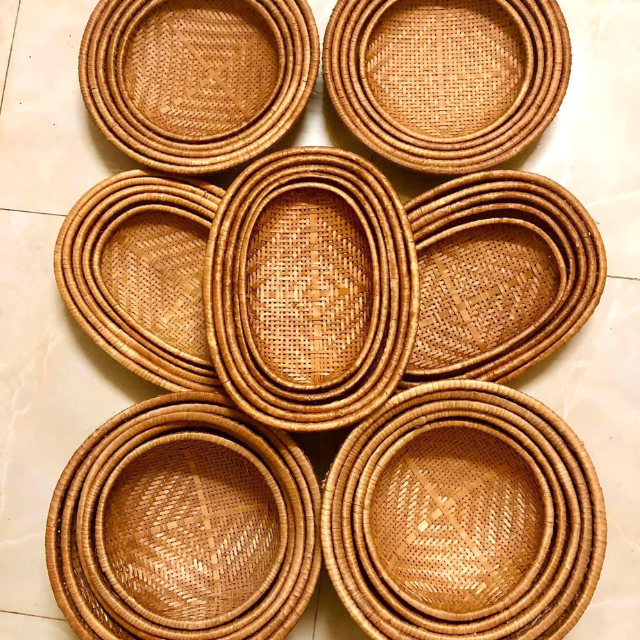 Plateau de panier en rotin vietnamien fabriqué à la main pour l'affichage de fruits et de collations