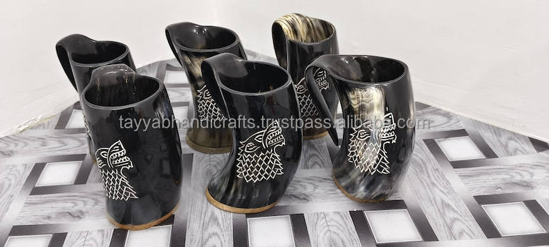 Tasse à corne à boire de style animal de sculpture Viking artisanale corne naturelle d'Inde pour le vin et la bière