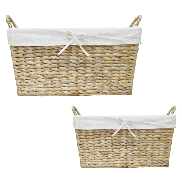 Panier de rangement artisanal en jacinthe d'eau panier à vêtements avec 2 poignées panier durable avec doublure en coton