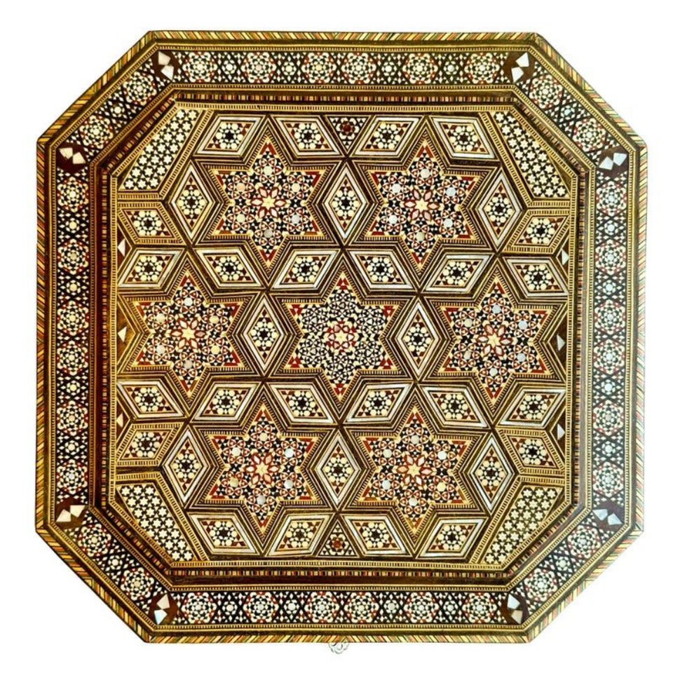 Plateau de service artisanal en bois de noyer avec incrustation de nacre, style marocain vintage, plateau décoratif pour la décoration de la maison