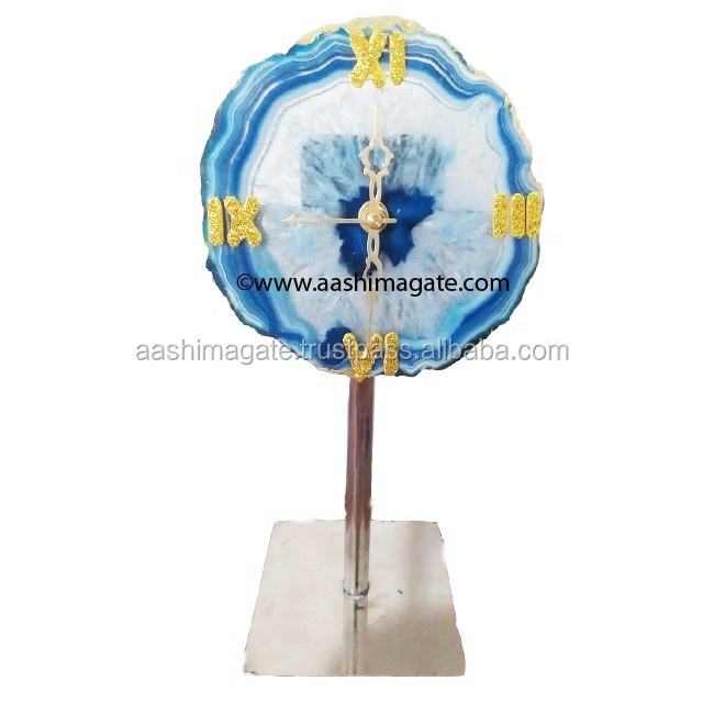 Horloge artisanale en tranche d'agate blanche D-Salt avec support en acier inoxydable, cristaux naturels, sous-verres Reiki, bord doré, Feng Shui, pour les affaires