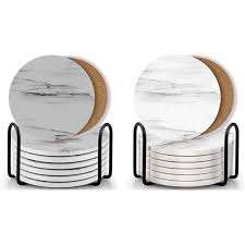 Sous-verres artisanaux en marbre blanc sans bois d'acacia pour vos boissons verres à vin et verres à bar Sous-verres en marbre et bois