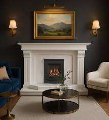 Cheminée en marbre blanc artisanal, cadre moderne classique avec piliers de support, autoportante, taille personnalisée, pour salon, avec télécommande