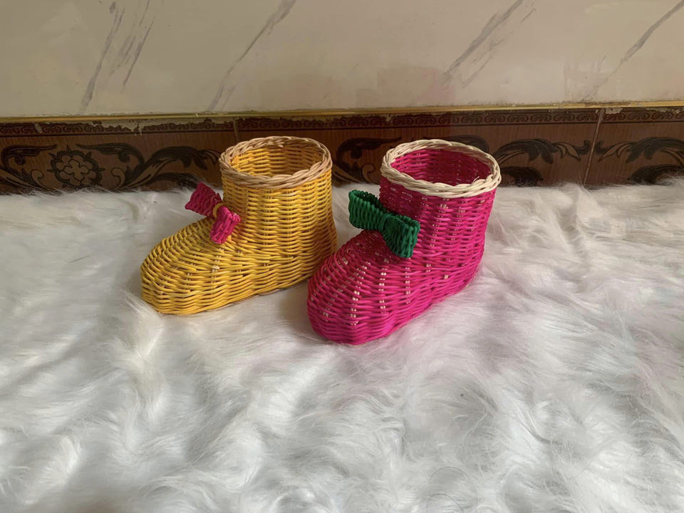 Ensemble de décoration de Noël en rotin en osier fabriqué à la main du Vietnam pour arbre rustique suspendu ornement de vacances écologique