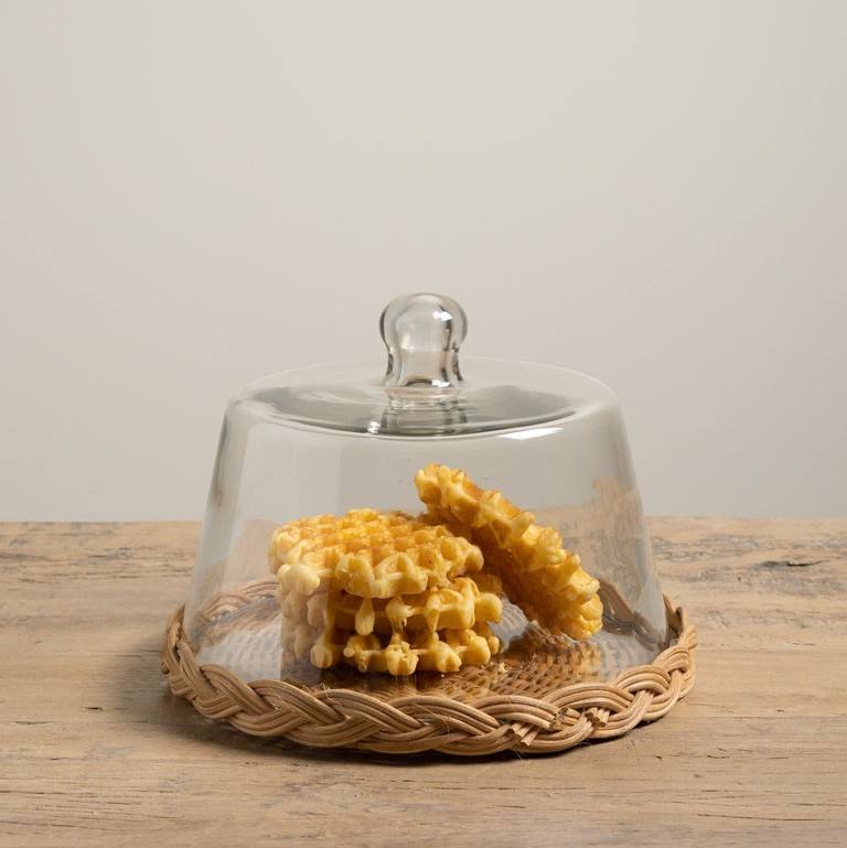 Couverture alimentaire en rotin en osier fabriqué à la main pour Snack pain fruits Dessert nourriture avec couvercle en acrylique Protection contre les mouches Table plateau de service