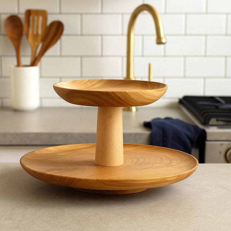 Nom du produit:PRÉSENTOIR À GÂTEAU EN BOIS À 2 NIVEAUX