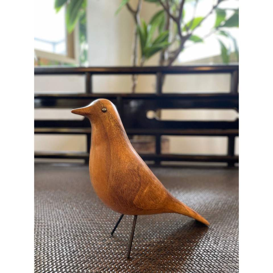 Handcrafted Eco-Friendly Minimalist Wooden Bird Figurine Metal Legs Natural Carved Sparrow Statue Home Decoration Rustic Wood