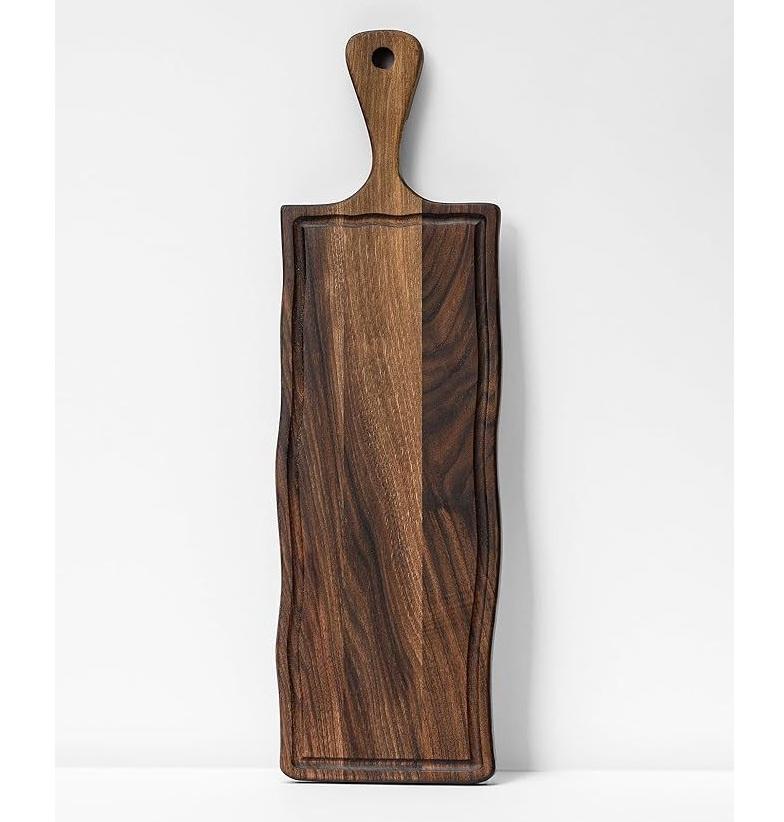 Longue planche à découper en bois fabriquée à la main pour la cuisine avec finition lisse Préparation de cuisine rustique et poignée suspendue