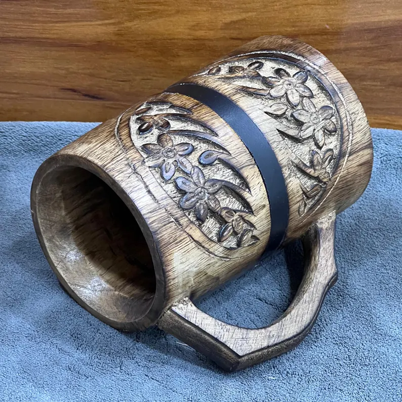 Product name:Wooden Mug with Floral Carving