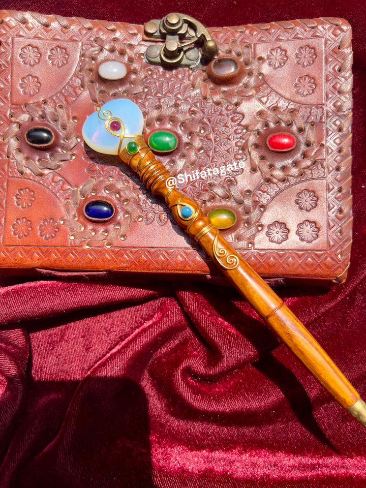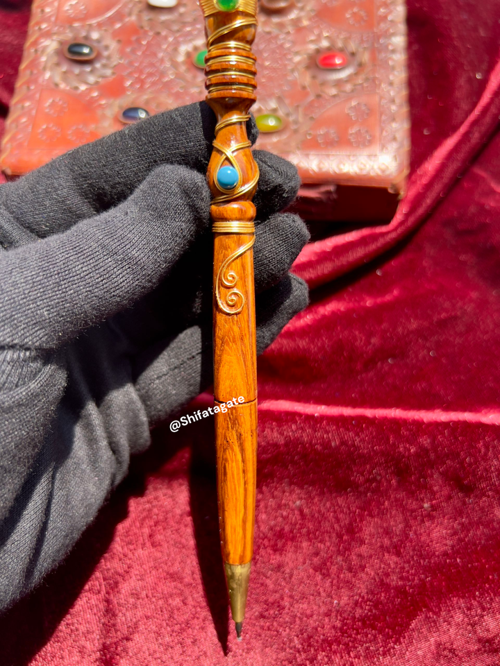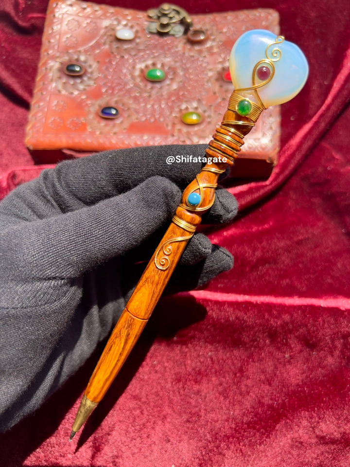 Product name:Wooden Pen with Opalite Heart Crystal Top and Chakra Stones