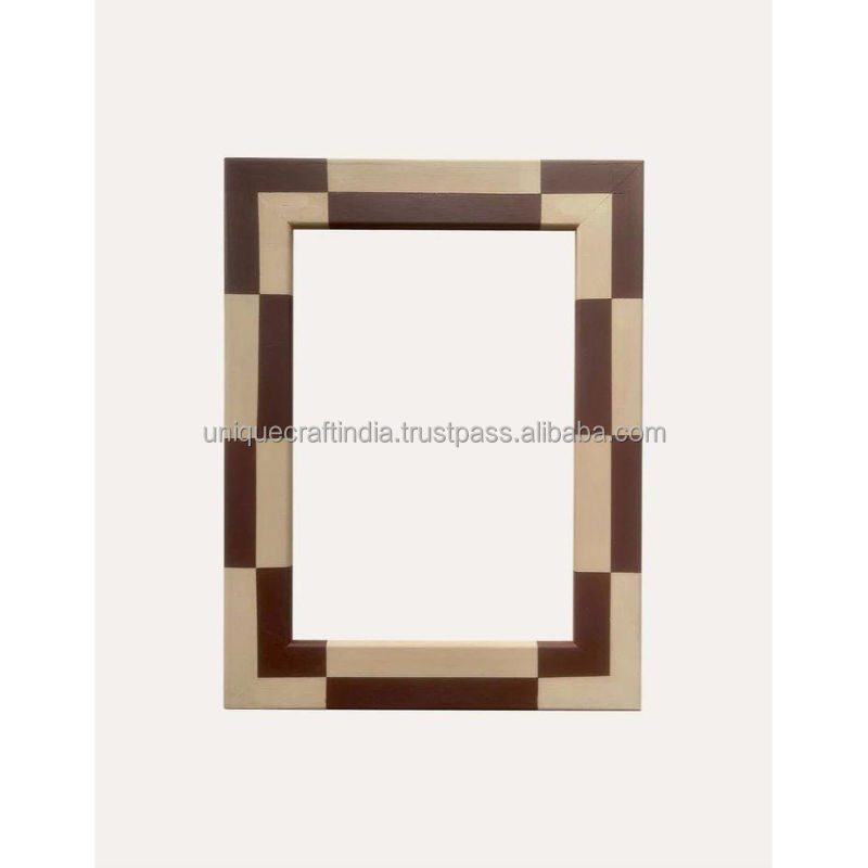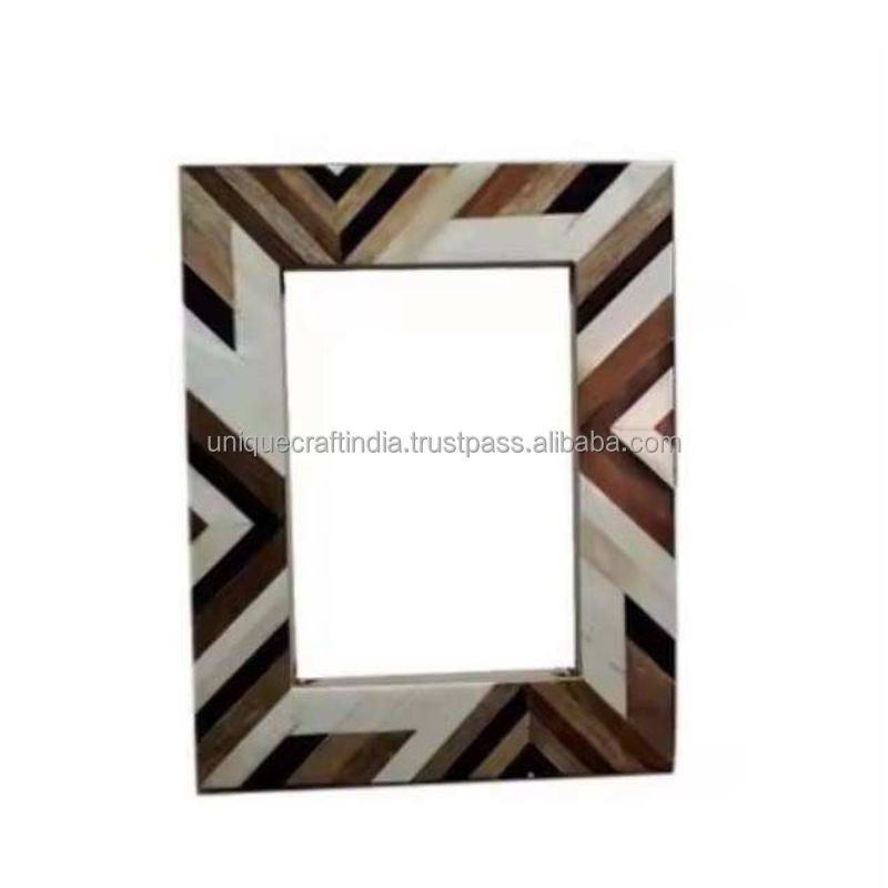 Cadre photo en bois artisanal avec incrustation en résine à grain de bois chevron, décoration intérieure classique et moderne
