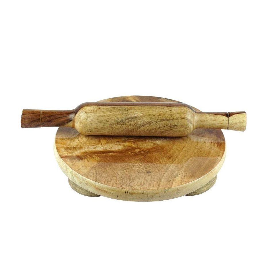Planche à rouler en bois artisanale avec finition lisse et rouleau à pâtisserie pour biscuits, pain, pâtisseries, pâte à pizza