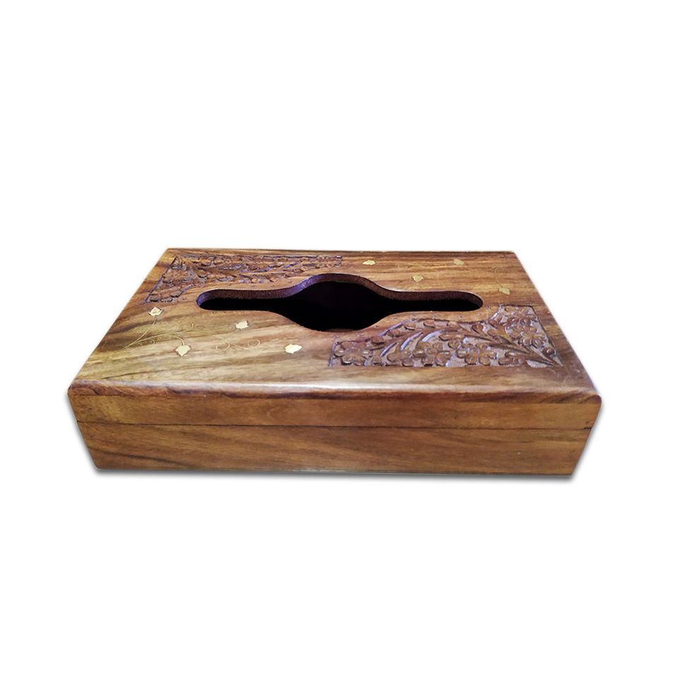 Couvercle de boîte à mouchoirs en bois fait à la main avec porte-serviettes décoratif rectangulaire au design sculpté floral pour la décoration de la maison et du bureau