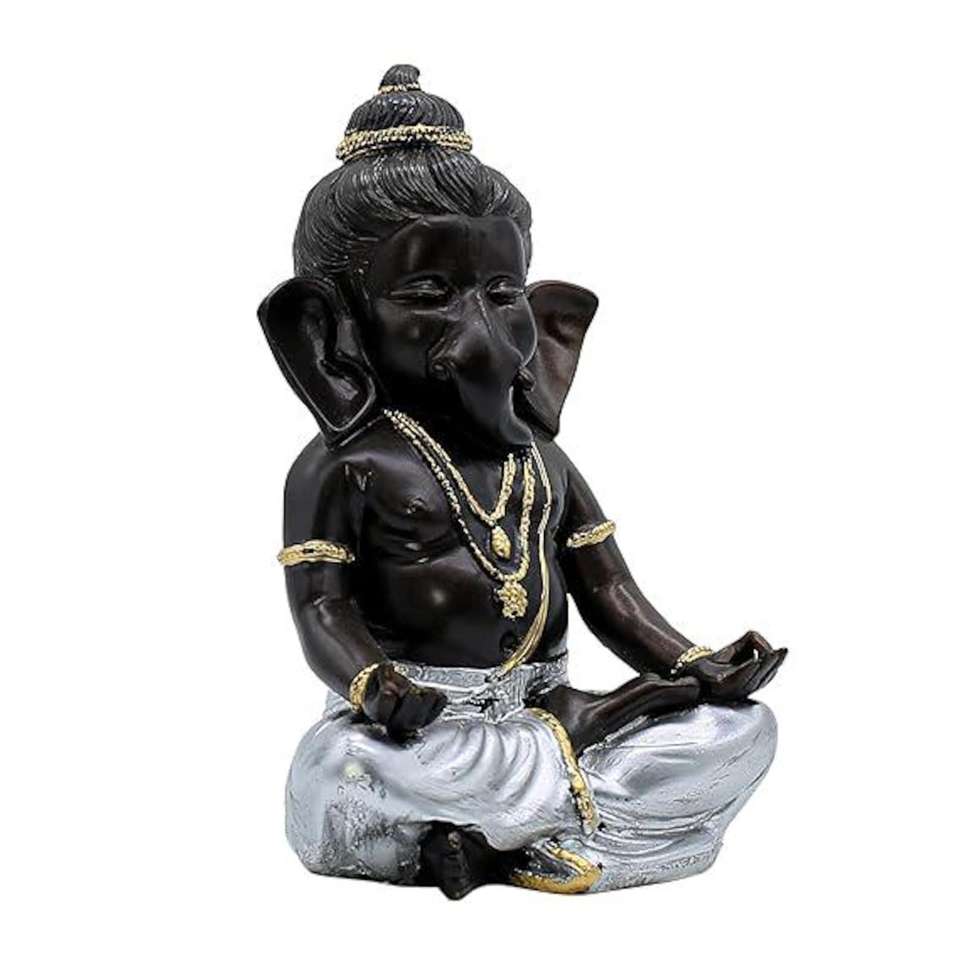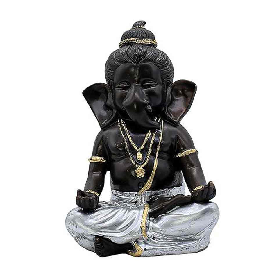 Handcrafted black ganesha meditation statue elegant spiritual idol for home decor pooja room office desk interior decoration