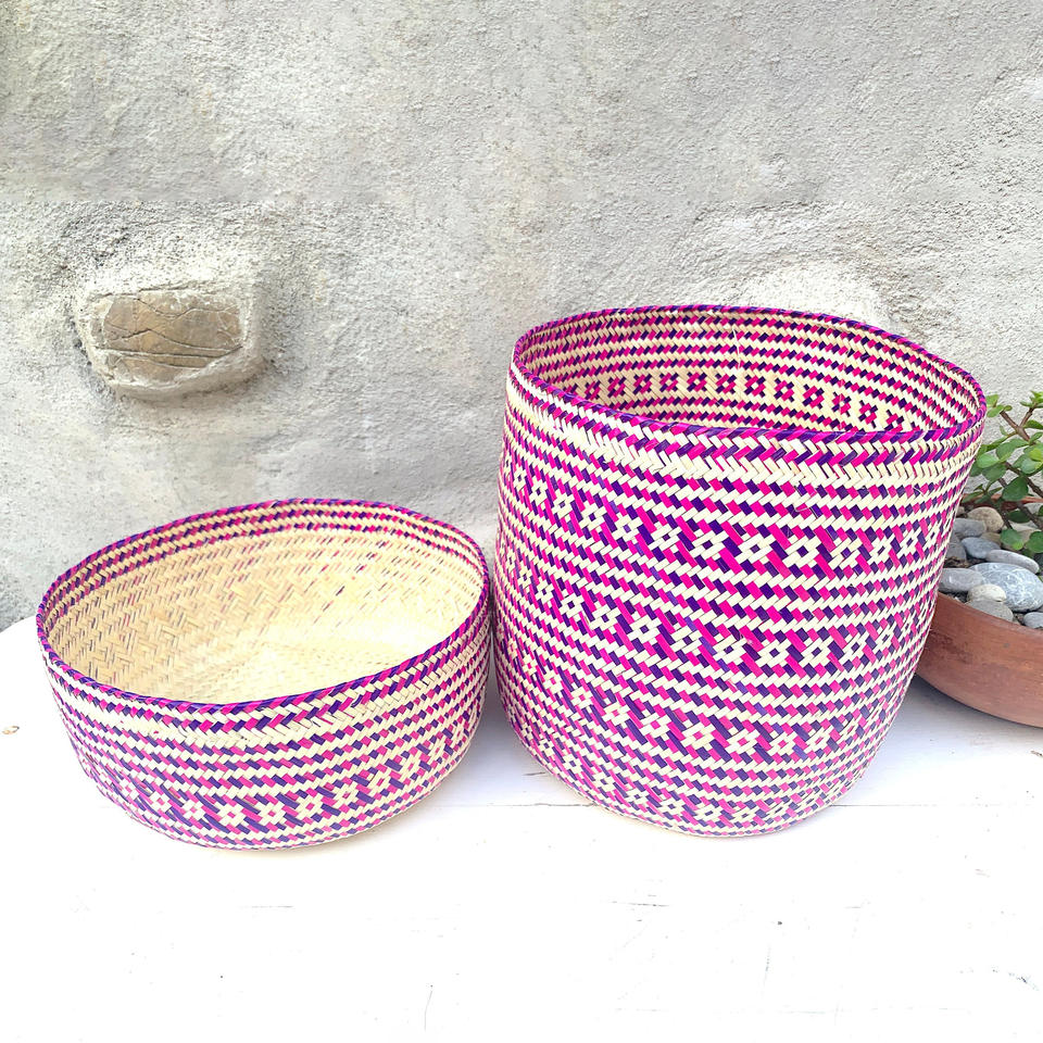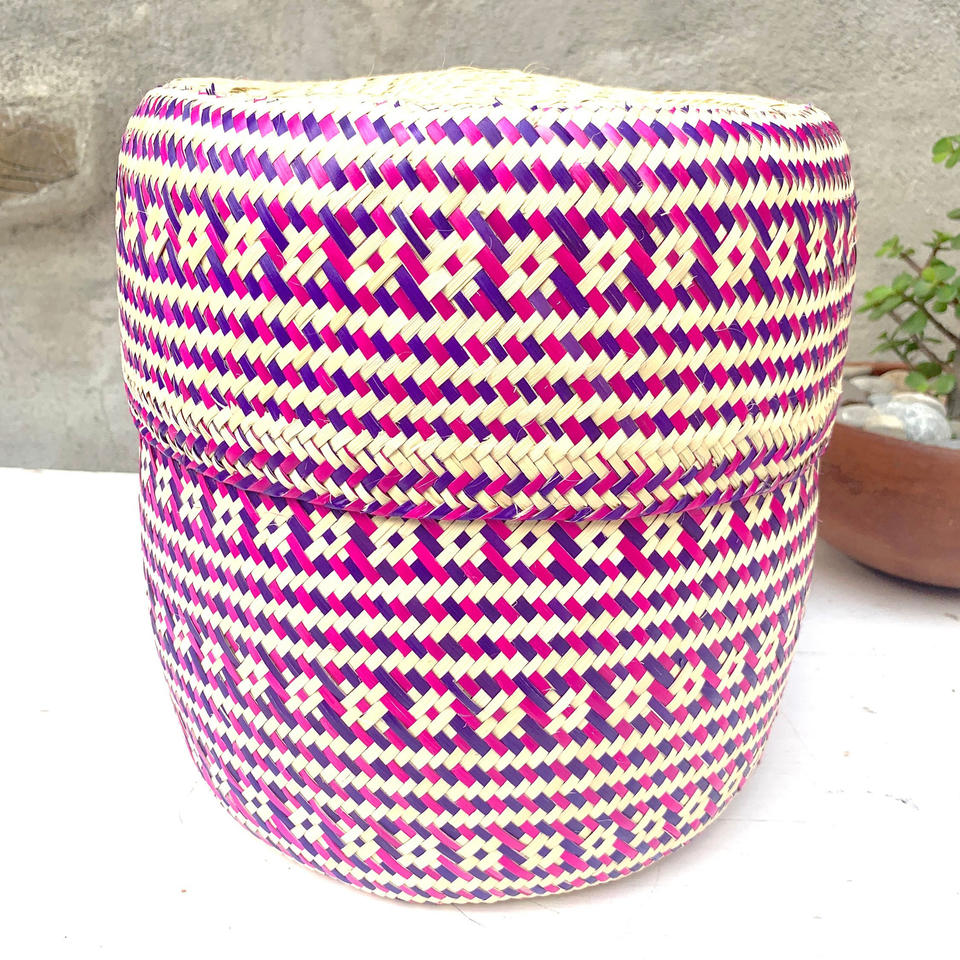 Handcrafted decor organizer pink seagrass straw boxes natural storage container sea grass box