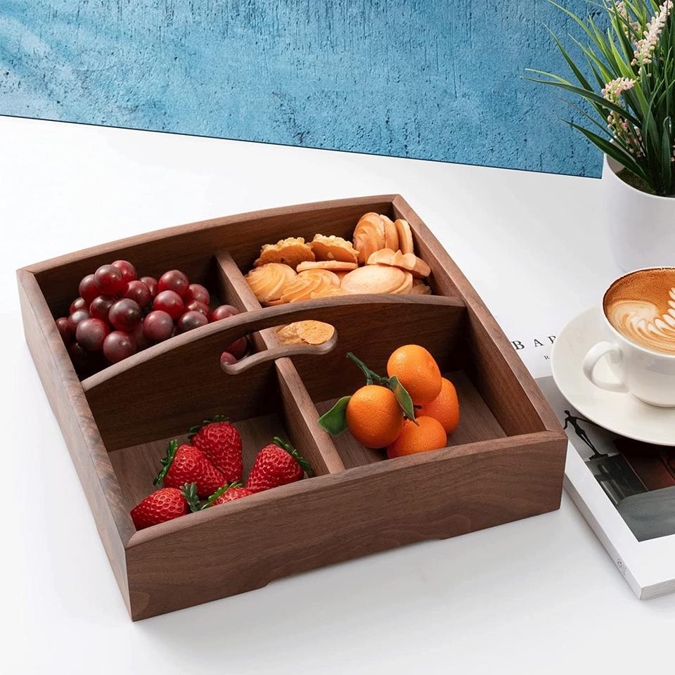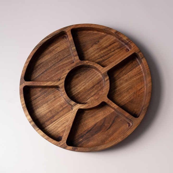 Plateau de service divisé artisanal avec compartiments plateaux divisés en bois naturel meilleur prix à vendre