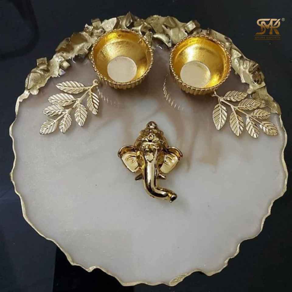 Handcrafted Eco-Friendly Epoxy Resin Puja Thali Artistic Prayer Plate Model Design Angel Style for Diwali Festival Spiritual