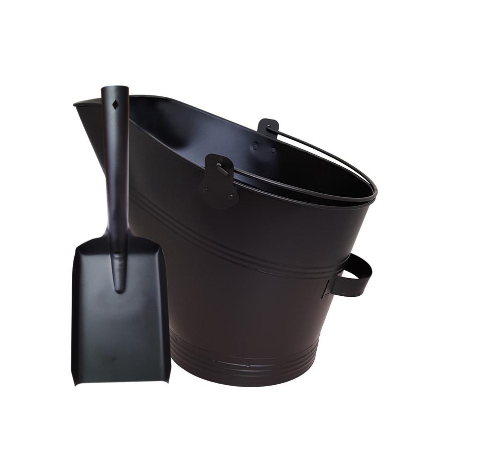 Seau à charbon galvanisé fabriqué à la main avec une capacité généreuse pour contenir les cendres de charbon ou de bois de chauffage à côté de votre poêle à bois
