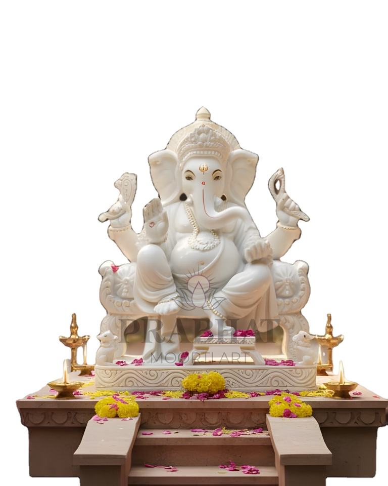 Idole de Ganesh Ji en marbre artisanal, divin dieu hindou, pour la décoration de la maison, du temple, de la salle de prière, œuvre d'art spirituelle et traditionnelle