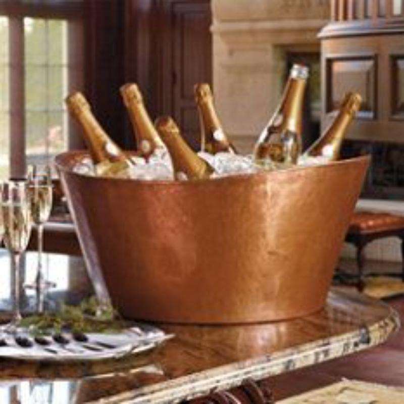 Seau à glace en cuivre martelé artisanal avec design antique luxueux et double isolation durable pour un meilleur refroidissement