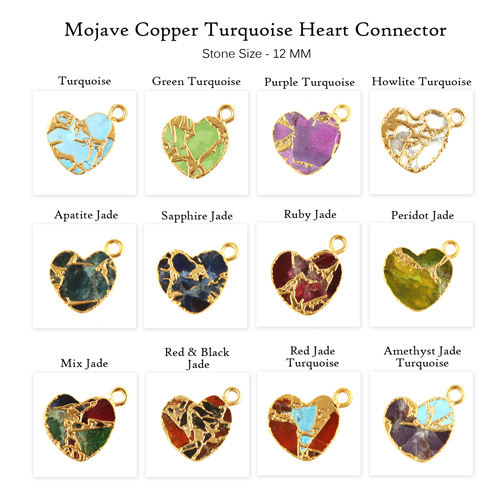 Fabrication de bijoux faits à la main mohave rubis cuivre turquoise connecteur de pendentif diy plaqué or en forme de cœur connecteur de fabrication de bijoux