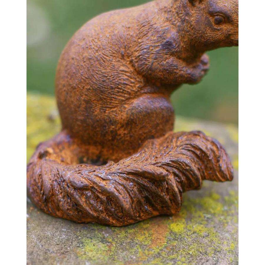 Sculpture d'écureuil en fonte artisanale, finition rouillée, prix bas, ornement décoratif d'écureuil pour les fournitures de jardin