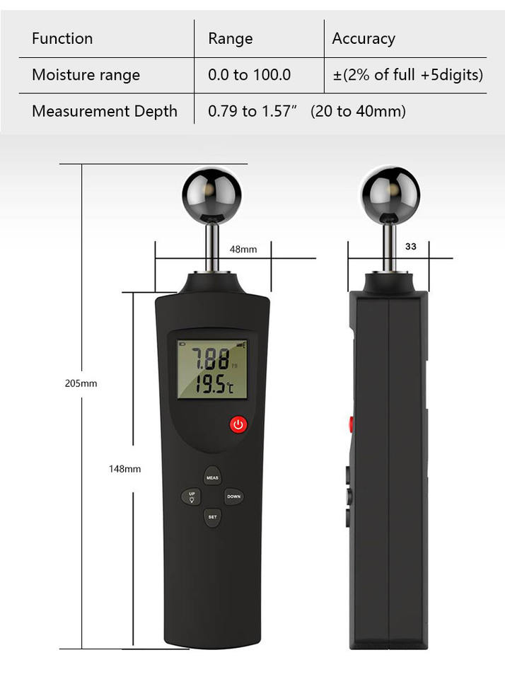 Profondeur de mesure:0,79 ~ 1,57" (20 ~ 40 mm)