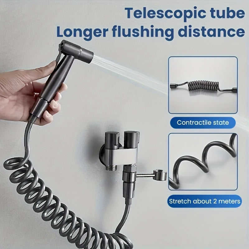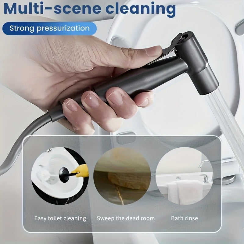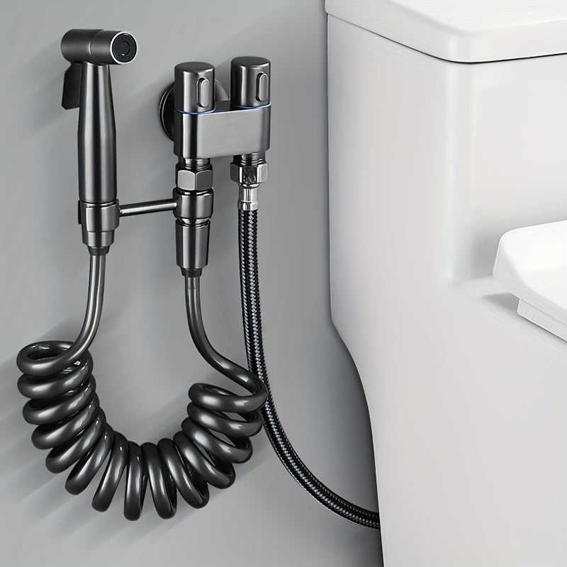 Kit de toilette portable gris rectangulaire mural avec robinet d'angle double fonction, pistolet pulvérisateur en acier inoxydable et support de téléphone télescopique